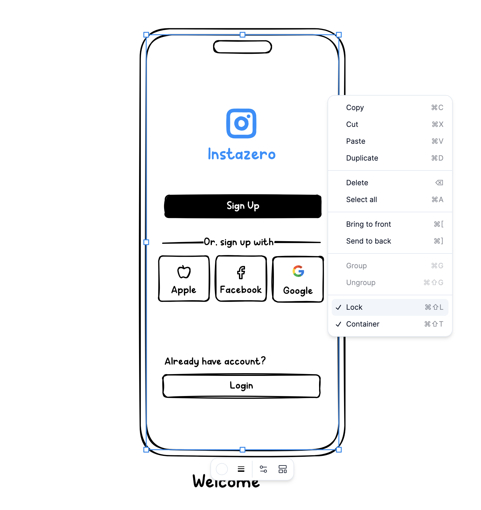 Frame0 now allows you to designate shapes as “containable” or “non-containable,” depending on your needs. When a shape is set as containable, other objects can be nested inside it, making it ideal for grouping related elements. This feature brings flexibility in organizing your wireframes and ensures you can create complex, layered designs with ease. To make shape containable or non-containable, check or uncheck Container in the context menu (mouse right click) or press Command+Shift+T (Ctrl+Shift+T in Windows).