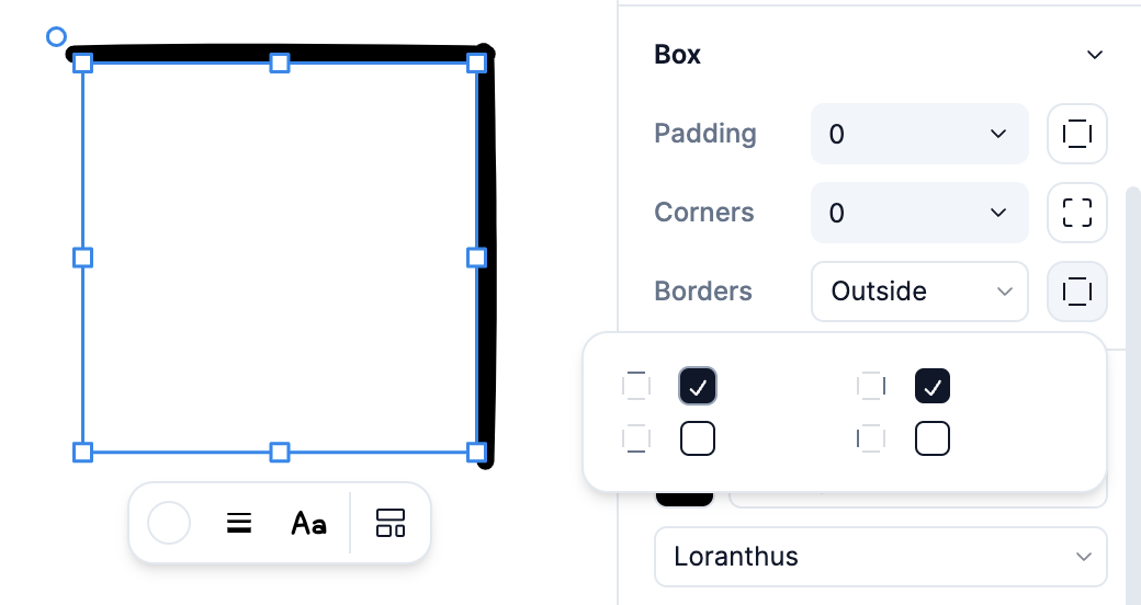 You can now selectively display borders in all four directions, as well as determine the position of the border. You can choose whether to draw the border inside the boundary or at the center or outside. Additionally, you can specify whether to draw the border for each direction: top, bottom, left, and right.